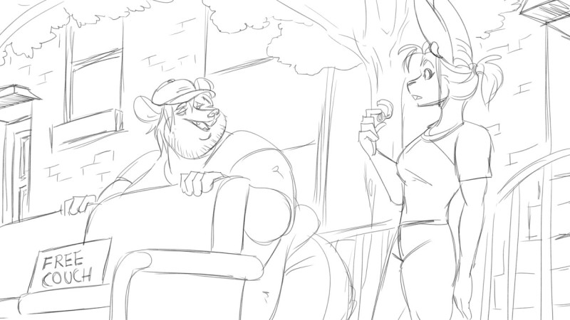 In this tale, Ann, a fit bunny, finds a couch that is being given away by a nerdy, shy, and overweight mouse, who is very timid and not providing her with many answers.